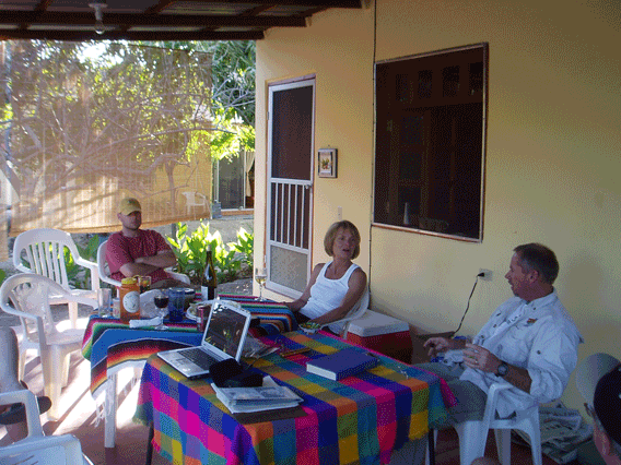 5th day. After 4 days on the road all the way from Alaska it was nice to sleep in, then relax over coffee and plan the week ahead. There is a lot to do when your on vacation, we have to fish, eat a little Mexican food, indulge a lot of evening bonding and fly someplace... We spent the day touring Mulege and meeting all of Pat and Kim's local friends. Seems Pat is like their honorary Mayor, knows the town It's people, helps out when he can. Each trip to the states there is shopping Kim does for many local families. Clothing is expensive and hard to fine locally. Pat raids used computer shops in Boise and brings systems back to Mulege for the schools and organizations in need.