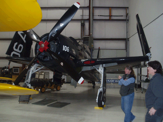 2nd day we still had a little weather, as you can see from the clouds in the picture above. Windy and rough but only scattered rain, yesterday it rained most of the way through Canada. We enjoyed the sights and put the camera to work. By 11am we were clearing US customs and topping off our tanks in Bellingham. Diana found a hanger door open and stumbled onto a Vintage War Bird collection, owned by a Silicone Valley Tycoon, I can't remember his name. Pictured is his Corsair. It's in annual and flyable but hasn't stretched it wings in over 2 years, seems insurance for 1 flight is $50,000! We winged our way south along the San Juan's, Bainbridge Island and after enjoying a view of Seattle the weather drove us inland and we followed the eastern spine of the coast range, Crater Lake, Mt Shasta and the Northern California's Central Valley to Cameron Park, just east of Sacramento. We'll spend an evening with Mom. Birchwood to Cameron Park in 15 hours, a very good start.
