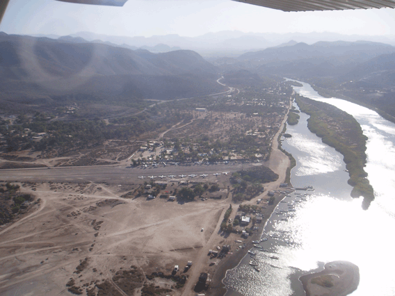 Hard packed dusty dirt strip, I must be in Alaska but where's the ice? Looks like a great place, look at all the aircraft. I park, open door and I'm greeted by a cold beer. Must be paradise lost, I said, Diana I think we crashed and it must be heaven, no were in Mulege, I don't think heaven is in you future... You think!