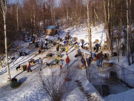 Iditarod begins at the first day of training but the fun begins Thursday before the race. Musher meeting, where the Mushers meet after a year of training and here what 1049 miles of trail has shaped to over the winter. It's great to visit old friends and meet the Rookies and have lunch with the Iditarod riders. Thursday night the Musher Banquet and a evening in the spotlight signing autographs and meeting the fans, the excitement builds. Friday for us is kennel day, friends and volunteers visit the dogs, we tell stories play tapes of past races and try not to think about the two weeks ahead crossing Alaska's wilderness and what lies ahead.