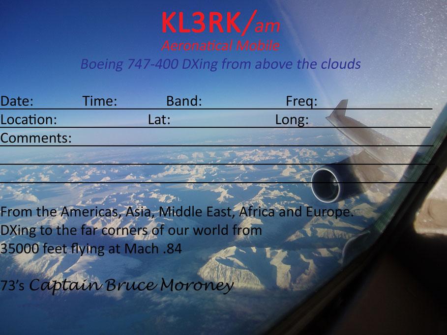Since we all know Armature Radio operators are an honorable lot, I know only those who have had an SSB contact with KL3RK will print and display this QSL card. Choose your card based on mm or am contact. Thanks