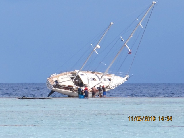 Within hours nearby village residence looted Morning Dove, steeling everything, including the toilets.  Days later insurance surveyors arrived at the site. Surf and looting had rendered Morning Dove a total loss. A few days later Morning Dove was towed off the reef and sunk.