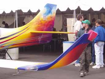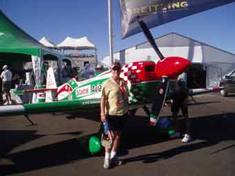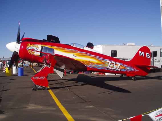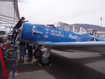 1963 Dad took me to my first Air Race at Reno. These were the early days of Reno and I remember vividly the performances of Bob Hoover, Art Scholl and the spectacular unlimited races. Engines throbbing with a resonance you could feel in your teeth. I was hooked and have gone back regularly since. I first took Diana to Reno in 1992 and have taken Josh and John, there all hooked.2004 Diana and I purchased box seats, (10 seats) at the home pylon with the Kramer family. Alison and Terry Yomans also joined us.Air Racing has a long history in America. Since the barnstorming days, pilots have been challenging their aircraft and each other in the sky. There were race venues from coast-to-coast after WWII which saw mostly modified surplus fighter aircraft screaming around a low level course dazzling spectators. Accidents, area growth and people who just don't like airplane noise have since eliminated all but one race. The National Championship Air Races at Stead Airport, Reno Nevada. Every September for 5 days, competitors, performers and fans flock to the only Air Race venue in the world. At 5000 feet elevation in the thin air of the High Sierra Desert it's non-stop action. Aircraft racing is the main attraction in addition to aerial displays, aerobatics, skydiving and the latest military aircraft demonstrations. Racing involves 6 classes.