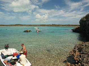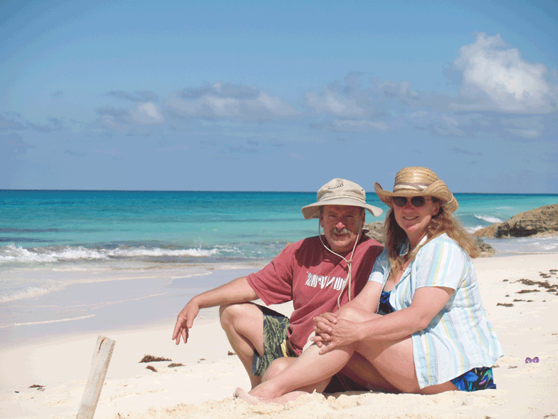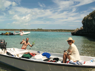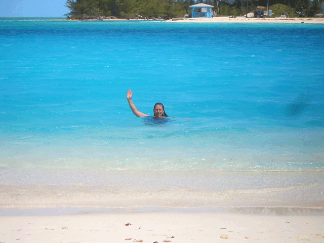 We found the Bahamas the cruise ships and tourist never see. Our beach cottage is just that and 50' from a small sandy beach surrounded by coral and just deep enough for a lawn chair and Kalik Beer in hand. Cob and Kim were off exploring the village while Diana and I found Island Time relaxing in the lagoon.