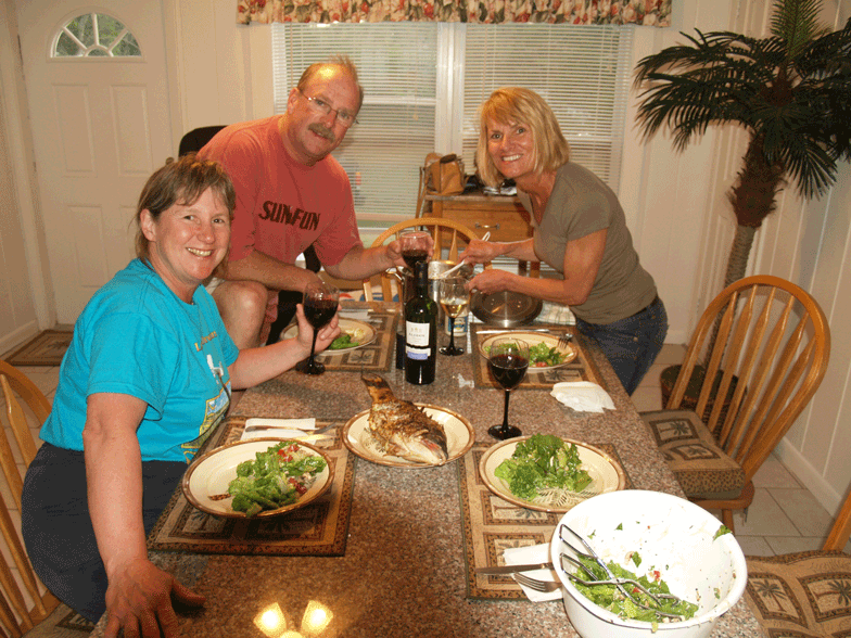April 23rd - 25th.. On to Marsh Harbor in the Abacos Islands. We enjoy the flight and over fly Grand Bahamas Island and the Northern part of Abacos Island. Beautiful light blue water. In Marsh Harbor we have a 3 bedroom house rented for 3 days. What a great place. Stop at the grocery store and fish store for the nights dinner. Hog fish, Stone Crab and Red Snapper cooked on the grill. A lot of wine, three cooks in the kitchen and a dinner lived not just prepared, beats any 5 star restaurant.