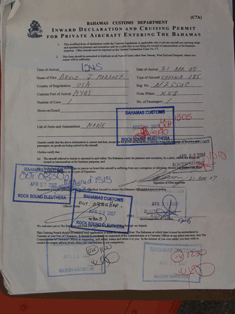 Our Bahamas Cruising Permit stamped at each port of call, pictured before surrendering it at our last port of call at North Eluthera before departing to the US.