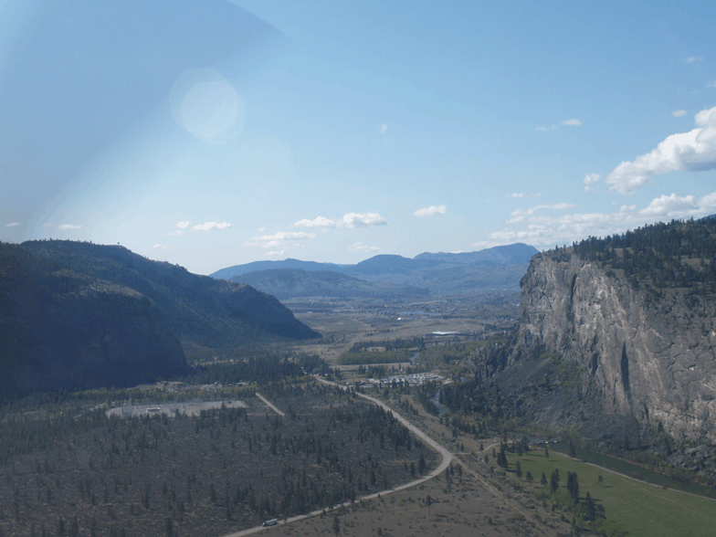 April 14th. Time to fly south. I departed Birchwood 7am. Weather is good today, lucky because it's been crap all week. Checking weather the coast route was a bad idea so inland I headed, direct Whitehorse 4 hours, clear customs refuel then off again. This next leg was the long one. Direct Penticton BC. 7 hours. With the belly tank and running the engine lean of peak, 10.5gph, I have an easy 7-8 hour range. With the ceilings being 11,500 and just scattered clouds. I had planned to RON in Penticton. I was an hour out when I flew over 100 Mile House and thought if I stop here I save a cab ride into town. The runway at 100 Mile House is in town and with only a 300 yard hike to a motel I called Pacific Radio, canceled my flight plan and land. The motel folks are use to this. I showed up on foot with just a small knapsack and the gal says you must have landed at the airport. Had a good dinner and slept and by 6am and I'm ready to continue.