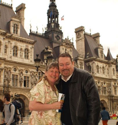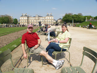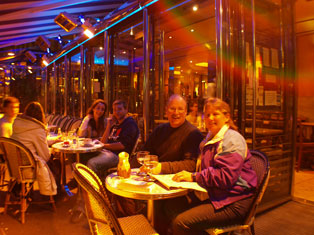 We spent the majority of the day walking the Louvre and by the time we hiked to a cafe to meet Hunter we were beat. Diana had a blister and my back had it! Paris cafe's line every city square and major corner. The cafe's are grouped with outside seating all lined up and facing outward to watch the world go buy. The evening was spent having a wonderful dinner with Hunter and then hiking back to the hotel. I have to admit that we were so exhausted by this time that we opted to catch the Metro for the last mile.