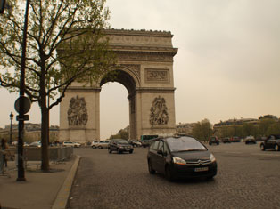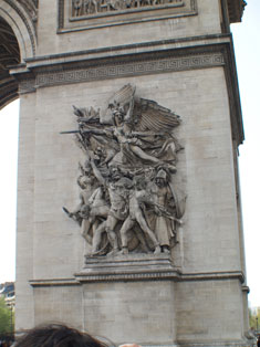 Next, the Arc de Triompe. Construction began in 1809 to honor Napoleon's soldiers. Today the Arc de Triompe is dedicated to the glory of all French armies. La Marseillaise, or Lady Liberty screams "Freedom is this way!" and points the direction with a sword.