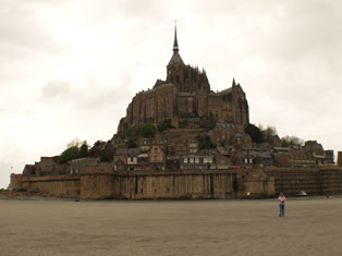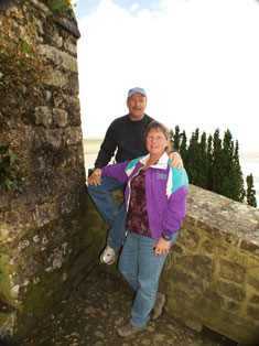 On the train trip Bruce began to worry. The weather turned from sunshine leaving Paris to rain approaching the coast! I think he began to doubt my Cousin Hunter's suggestion to make the trip to St Michel a must! As we arrived at Mont St Michel, the rain stopped, beautiful clouds encased the sky surrounding St Michel with blue skies peeking between, allowing for a spectacular view of the Island. Seeing this place I think changes your attitude and thoughts regardless of the current weather. A place which is very difficult to describe until you see it for yourself. How do you describe a place like this?.
